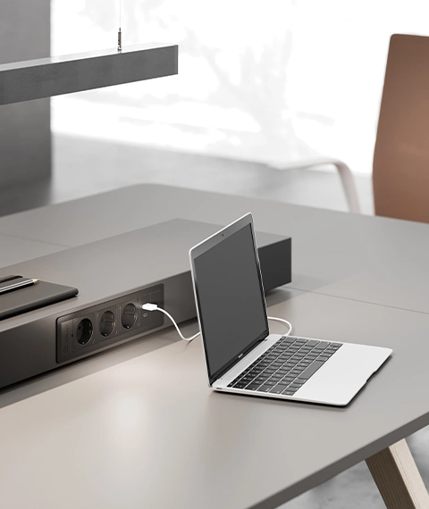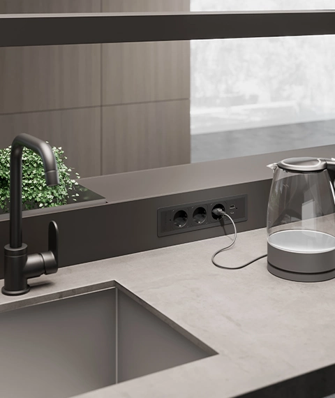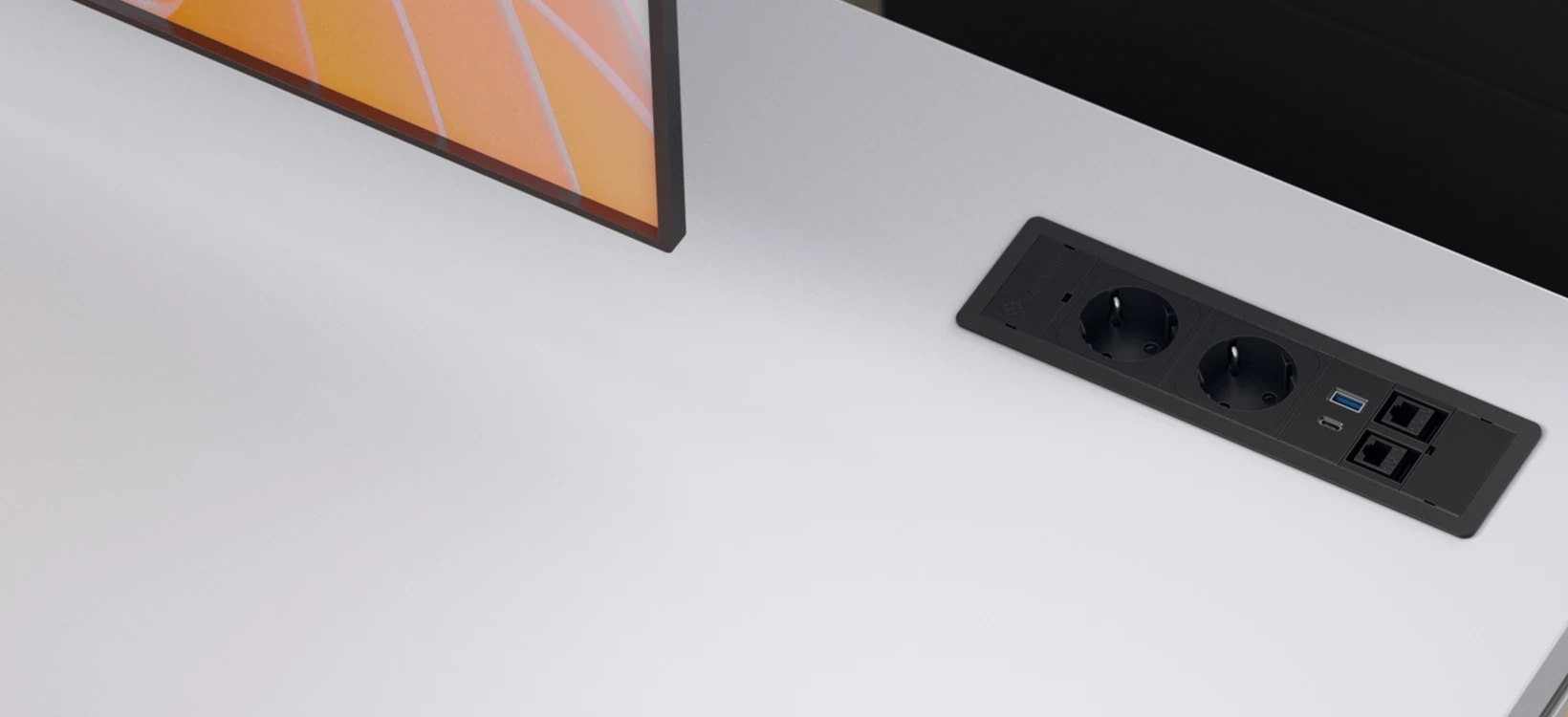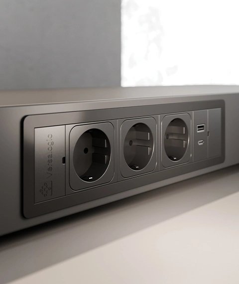 Die VersaFrame 3.0 ist eine elegante und minimalistische flächenbündige Mehrfachsteckdose, die gerne in Küchenmöbeln, Co-Working-Stations, Betriebsbüros und in all den Bereichen eingesetzt wird, die ein besonderes Augenmerk auf die Übersichtlichkeit der Arbeitsfläche legen.