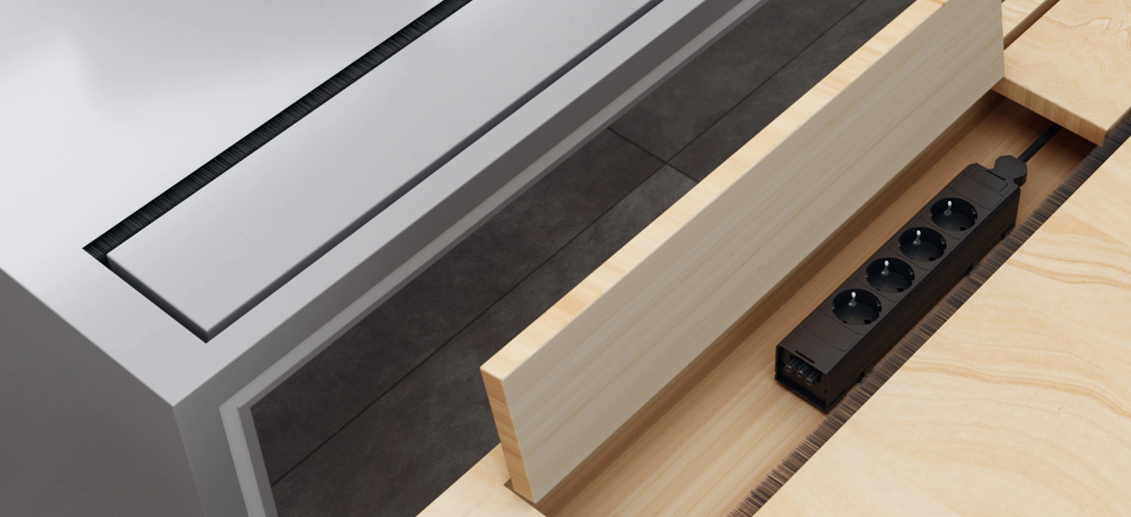 VersaTek Basic ist eine sehr fähige Konzeption für die Standardstromversorgung von Betriebs-Bench- und Co-Working-Tischen.
