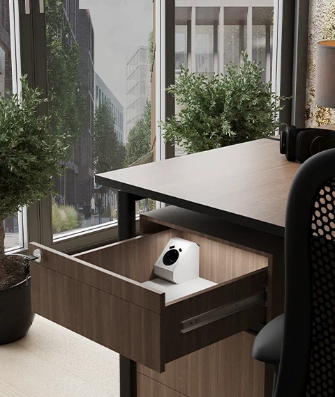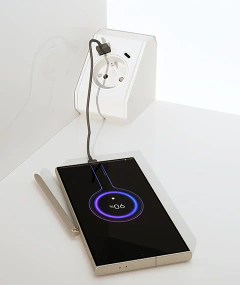 Dank der kompakten Abmessungen von Versapoint 2.0 mit einer Stärke von nur 19 mm kann das System installiert werden, ohne die Möbel von der Wand abzurücken, wodurch der Platzbedarf im Raum minimiert wird.