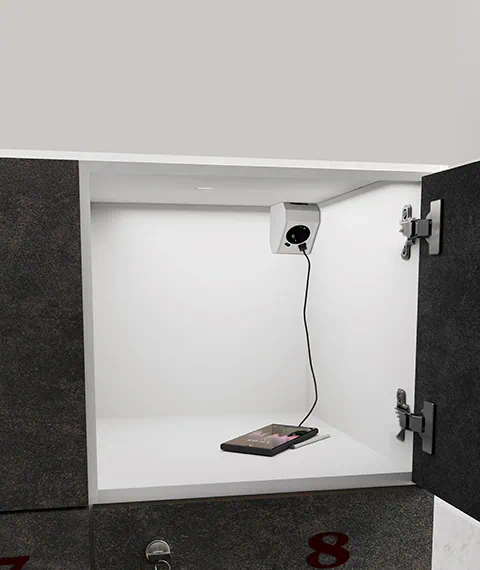 VersaBit ist in einer Vielzahl von Konfigurationen erhältlich, die sich an eine breite Palette an Funktionen und Raumanforderungen anpassen. Die Vielfalt der Ausführungen ermöglicht eine große Flexibilität bei der Installation von Steckdosen in den Schließfächern. Eine anpassbare Lösung, die mit jedem Anwendungskontext kompatibel ist.