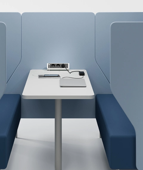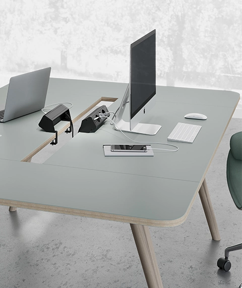VersaDesk è stata progettata e sviluppata per offrire tutta la versatilità di VersaTek, ma con un facile accesso sopra piano. Un sistema che rende più pratico l'utilizzo della multipresa e la gestione dei dispositivi elettronici.