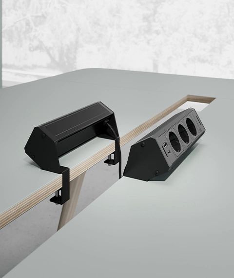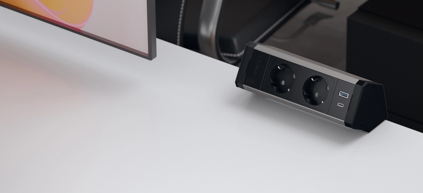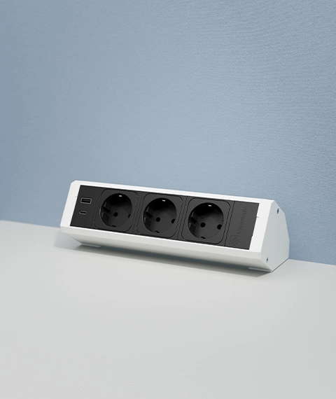 VersaDesk è una multipresa di servizio per scrivania, particolarmente indicata per le postazioni operative e per l’home office.