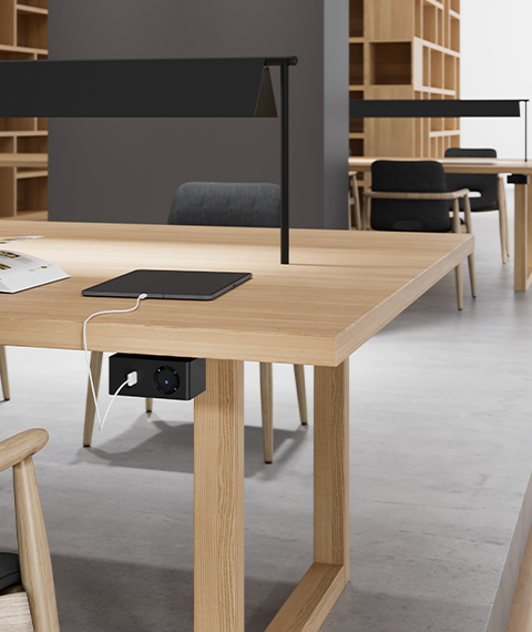 Si presta alla massima fruibilità negli spazi di co-working, sale executive, tavoli meeting, hotel e residenziale. Una multipresa di servizio versatile e salvaspazio che combina funzionalità ed eleganza.